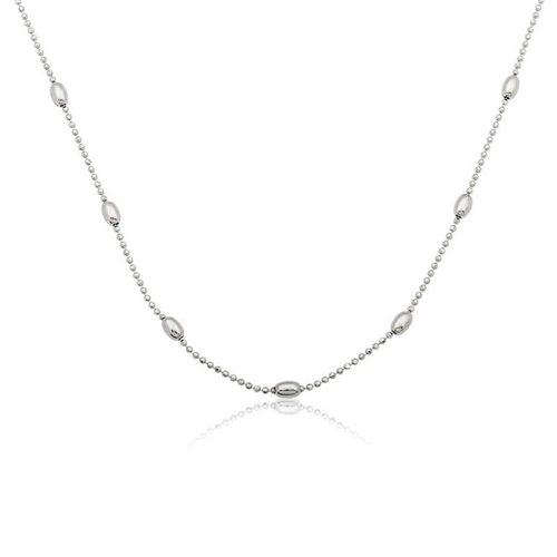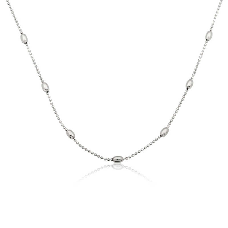 Silver Small Ball and Barley Chain This stylish chain is made of 925 sterling silver. Rhodium plated on silver. Rhodium plated women's chains preserve their shine for a long time and oxidation is delayed. It is a perfect gift option for your loved one on birthdays, Valentine's Day and special occasions. As with all of our silver chain models, this silver small ball and barley chain is also produced entirely by hand. Due to silver and precious stones, there may be ± 10% deviation in product weight. Width: 0.4 mm Length: 44 cm Average Weight: 3.46 gr.