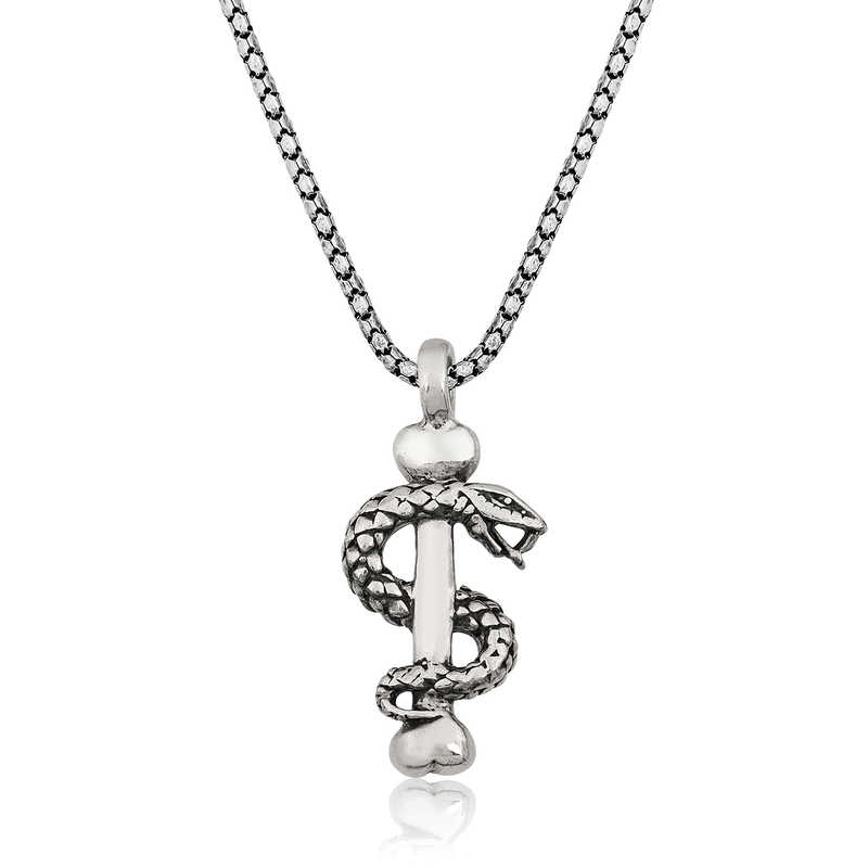 Silver Snake Men's Necklace Snakes symbolize wisdom and power. Considered sacred in many cultures, especially Christianity, snakes represent life and the power of life. How about carrying power and wisdom around your neck with this necklace. Snake men's necklace is made of 925 sterling silver. Oxidized silver is coated. Oxidized silver necklace models preserve their shine for a long time and delay tarnishing. The length of the silver chain is 55 cm. Like all men's necklace models, the silver snake men's necklace is also handmade. Due to silver and precious stones, there may be a ± 10% deviation in the specified product weight. Width: 1.50 cm. Length: 3.50 cm. Average Weight: 10.75 gr.