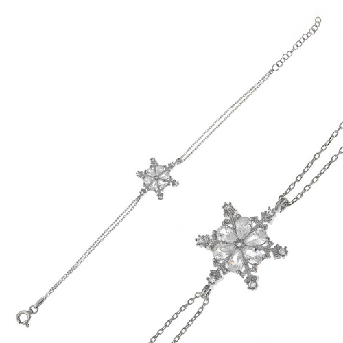 Silver Snow Flower Women's Bracelet The shine and clarity of women are likened to snowflakes. The snowflake also symbolizes the person you love. The fact that each snowflake, like women, is unique and has a different value is another feature that makes them special. The nobility of the snowflake has managed to attract attention in every period. It also symbolizes that people, just like snowflakes, can live happily without hurting each other. This stylish and meaningful bracelet is a perfect option for a birthday gift, Valentine's Day gift, or a gift for mothers on special occasions. The bracelet is made of 925 sterling silver. Rhodium plated on the silver. Rhodium plated products preserve their shine for a long time and oxidation is delayed. Like all silver women's bracelets, this silver snowflake women's bracelet is entirely handmade. Due to silver and precious stones, there may be ± 10% deviation in the average product weight. Snow Flower Width: 1.80 cm Snow Flower Length: 2.50 cm Bracelet Length: 19 cm Average Weight: 2.90 gr.