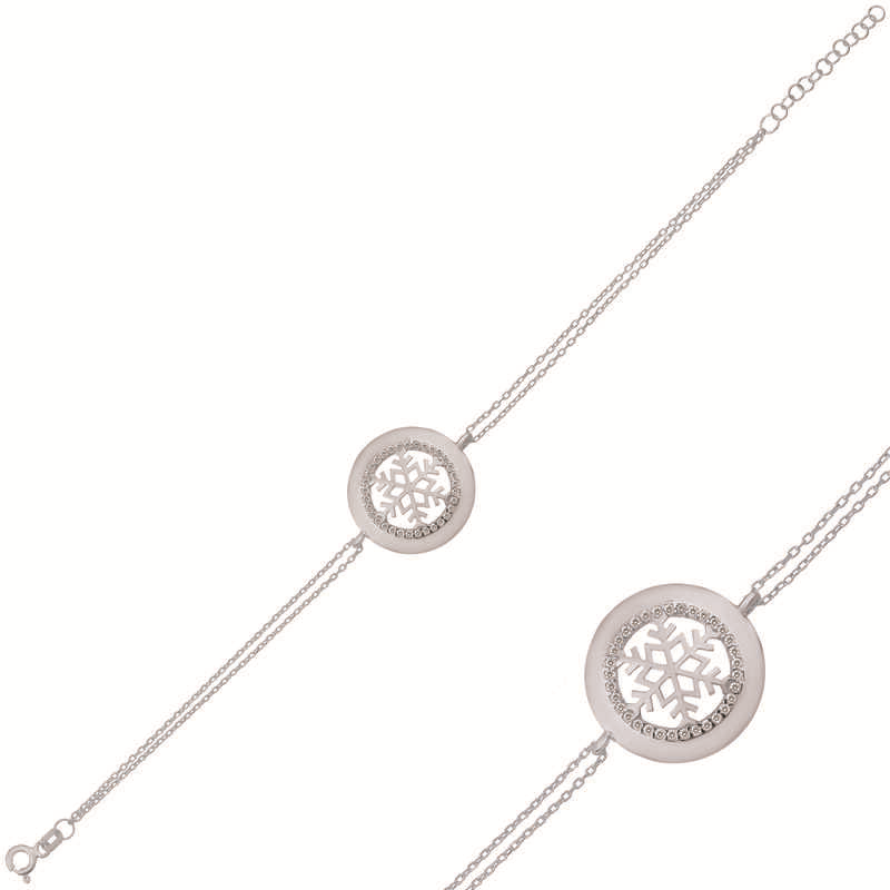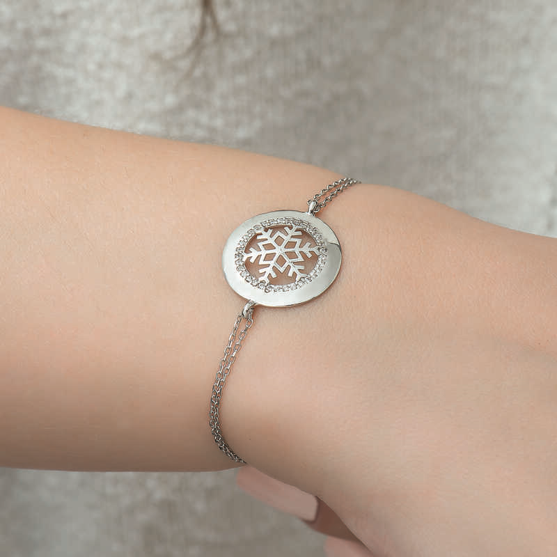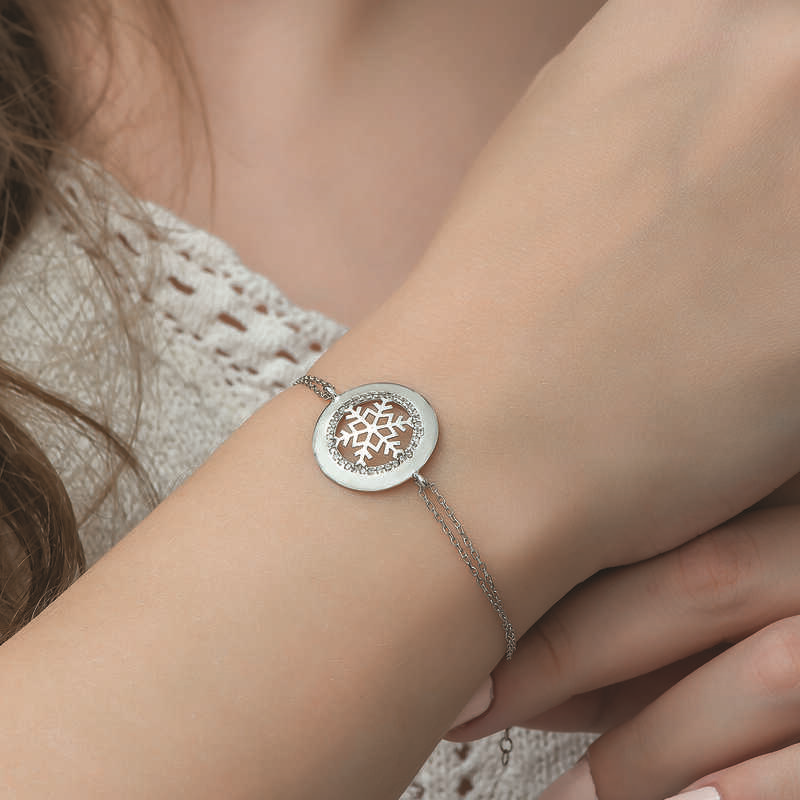 Silver Snowflake Women's Bracelet The shine and clarity of women are likened to snowflakes. Snowflakes symbolize the person you love. The fact that each snowflake is unique and has a different value, like women, is another feature that makes them special. The nobility of the snowflake has managed to attract attention in every period. It also symbolizes that people, just like snowflakes, can live happily without hurting each other. This stylish and meaningful bracelet is a perfect option for a birthday gift, Valentine's Day gift or a gift for mothers on special occasions. The bracelet is made of 925 sterling silver. Rhodium plated on silver. Rhodium plated products preserve their shine for a long time and oxidation of the product is delayed. Like all silver women's bracelets, this silver snowflake women's bracelet is entirely handmade. Due to silver and precious stones, there may be a ± 10% deviation in the average product weight. Width: 2.00 cm Length: 2.00 cm Average Weight: 2.45 gr.
