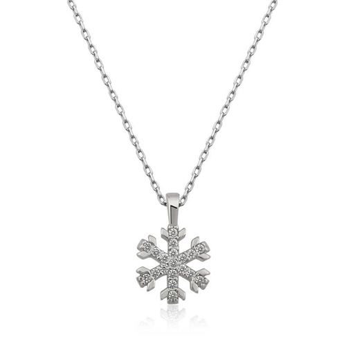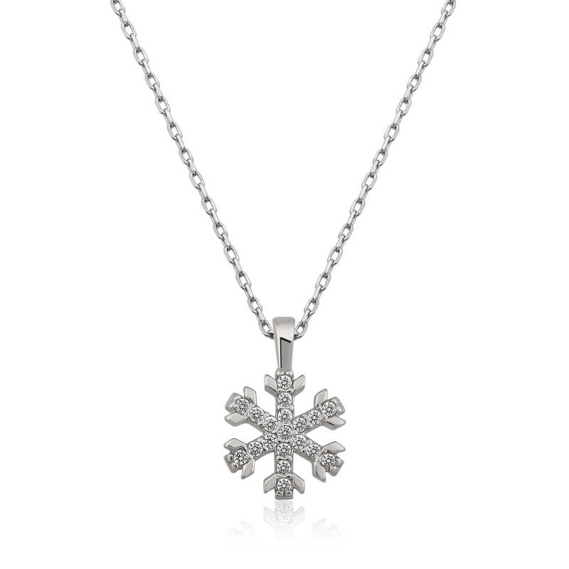 Silver Snowflake Women's Necklace The sparkle and clarity of women have been specially designed to resemble snowflakes. The fact that each snowflake is unique and has a different value, like women, is another feature that makes them special. Their nobility has managed to attract attention in every period. Additionally, it symbolizes that people, just like snowflakes, can live happily without hurting each other. This stylish necklace is a perfect option for a birthday gift, a Valentine's Day gift or a gift for mothers on special occasions. Silver Snowflake Women's Necklace is made of 925 sterling silver. Rhodium plated silver. Rhodium plated products preserve their shine for a long time and oxidation is delayed. The stones on it are zircon. Like all silver women's necklaces, this silver snowflake women's necklace is entirely handmade. Due to silver and precious stones, there may be a ± 10% deviation in the average product weight. Width: 1.00 cm Length: 1.00 cm Average Weight: 1.86 gr.
