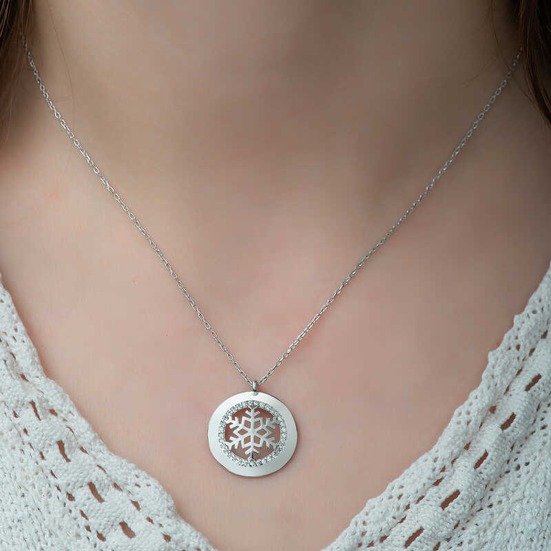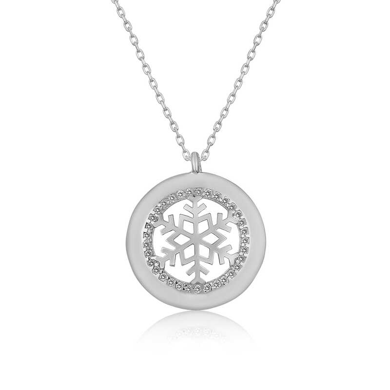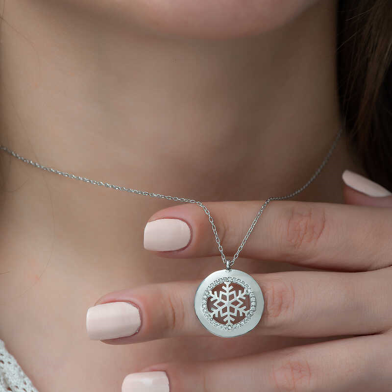 Silver Snowflake Women's Necklace The sparkle and clarity of women are likened to snowflakes. Snowflakes symbolize the person you love. The fact that each snowflake is unique and has a different value, like women, is another feature that makes them special. The nobility of the snowflake has managed to attract attention in every period. It also symbolizes that people, just like snowflakes, can live happily without hurting each other. This stylish and meaningful necklace is a perfect option for a birthday gift, Valentine's Day gift, or a gift for mothers on special occasions. The necklace is made of 925 sterling silver. Rhodium plated on the silver. Rhodium plated products preserve their shine for a long time and oxidation of the product is delayed. Like all silver women's necklaces, this silver snowflake women's necklace is entirely handmade. Due to silver and precious stones, there may be a ± 10% deviation in the average product weight. Width: 2.00 cm Length: 2.00 cm Average Weight: 2.65 gr. Chain Length: 45.00 cm
