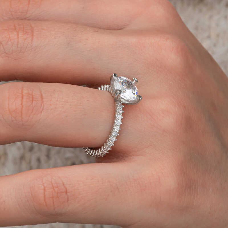 Tektaş is often used as a engagement or marriage ring and represents the bond between two people. Tamtur means endless love and commitment. Fully covered with stones around the face, symbolizes the stability and continuity of the relationship. This special design is made of single stone full ring 925 adjustment silver. Rodium coating on silver is made. Lady silver ring models made of rodium coating keep brightness for a long time, oxidizing is delayed. The stones on the ring are zirconia. It is an excellent gift option that you can give your loved birthday, dear days and special days. As with all female rings, the silver single ring is built with hand labor. Due to silver and precious stones, the average product weight specified can be ± 10% deviation.