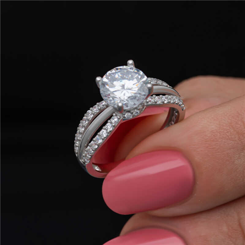 Silver Solitaire Women's RingThis specially designed solitaire ring is made of 925 sterling silver. Rhodium plating is applied to the silver. Rhodium-plated women's silver ring models preserve their shine for a long time and oxidation is delayed. The stones on the ring are zircon. It is a perfect gift option that you can give to your loved one on birthdays, Valentine's Day and special occasions. Like all of our silver women's ring models, this solitaire women's ring is also produced entirely by hand. Due to silver and precious stones, there may be a ± 10% deviation from the average product weight.Width: 2.00 cmLength: 2.50 cmAverage Weight: 3.40 gr.