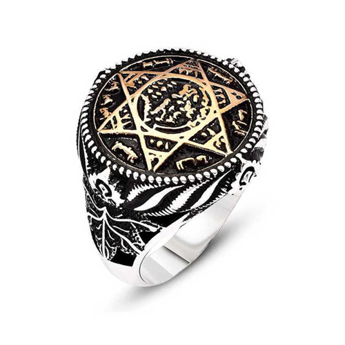 Silver Solomon Prophet Seal Men's RingThe ring with this seal was used by Adam and left in heaven when he was born, and was later brought to David by Gabriel with the permission of God Almighty. Since his son Solomon was worthy, it was given to him. First of all, it symbolizes the attributes of Jalal and Jamal of Allah Almighty. This seal is a symbol, a divine symbol. You can gift the Silver Seal of Solomon Ring to your loved ones. Oxidized silver is coated. All of our products are handmade. Due to silver and precious stones, there may be ± 10% deviation from the average product weight.Average weight: 16.00 gr.