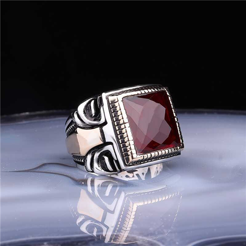 Silver Square Faceted Burgundy Stone Men's Ring This men's ring model, made of burgundy stones on silver, is a stylish accessory that you can use at any time of the day. You can gift this ring to yourself or your loved ones on your birthday, Father's Day or special occasions. Faceted burgundy square stone men's ring model is made of 925 sterling silver. Oxidized silver is coated. Oxidized silver men's rings preserve their shine for a long time. Like all men's rings, the silver square faceted burgundy stone men's ring model is produced by hand. Due to silver and precious stones, there may be a ± 10% deviation in the average product weight.Width: 1.70 cmLength: 1.70 cmAverage Weight: 16.00 gr.