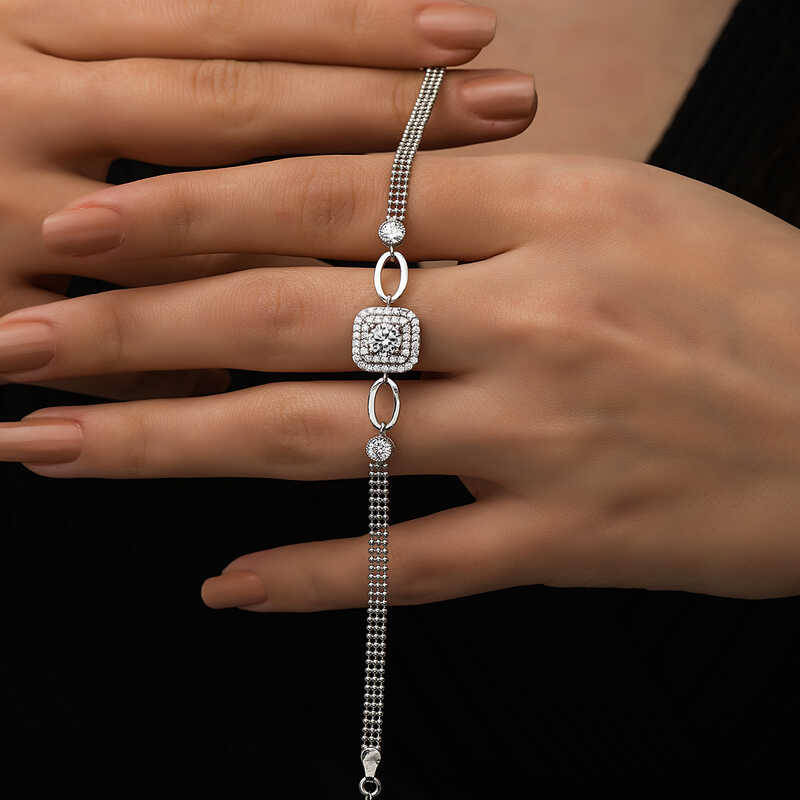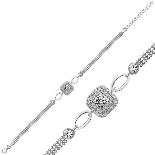 Silver Square Mounted White Stone BraceletSilver bracelets, which are among the favorite accessories of special occasions and also everyday wear, meet you with their original designs. By examining the bracelet models that offer you the most elegant ways to emphasize your style and reflect it outside, you can have bracelet models that you can use at any moment of the day. The silver square mounted white stone women's bracelet is also among these bracelets. This colorful baguette stone bracelet, which you can use on daily and special occasions, is made of 925 sterling silver. Rhodium plated silver. Rhodium plated silver products preserve their shine for a long time. Like all silver bracelets, the silver square mount white stone women's bracelet model is produced by hand. Due to silver and precious stones, there may be a ± 10% deviation in the specified product weight.Width: 4.00 cmLength: 1.20 cmChain length: 21 cmAverage Weight: 4.65 gr.