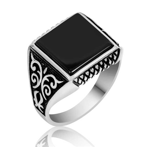 Silver Square Onyx Stone Patterned Men's RingDesigned for those who do not compromise on classic and elegance, this stylish ring is made of 925 sterling silver. The silver is oxidized. The black stone on the ring is onyx. Like all silver men's rings, the silver black stone men's ring is produced entirely by hand. It is a perfect option for a birthday gift, Father's Day or special occasions. Due to silver and precious stones, there may be a ± 10% deviation from the average product weight.Average Weight: 8.00 gr.