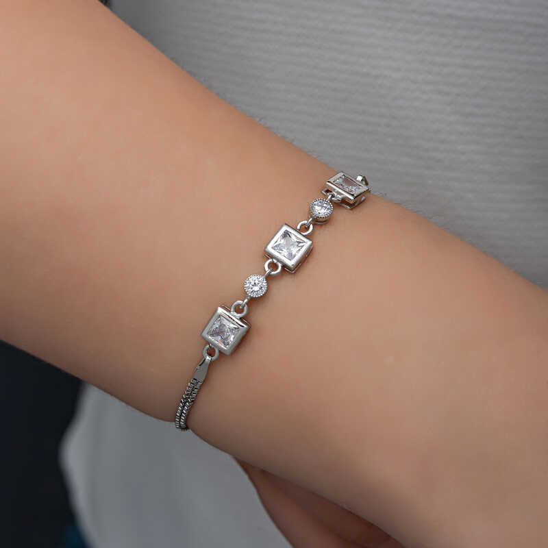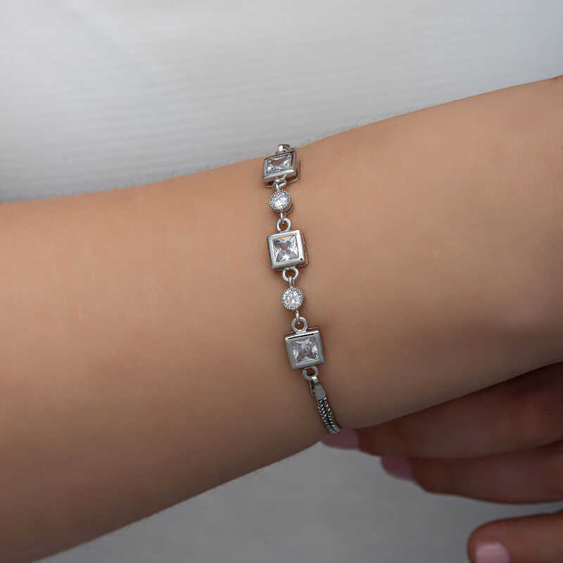 Silver Square Zircon Stone Women's BraceletThe bracelet models offered to you in a wide range, from traditional and flashy motifs to simple designs, manage to attract the appreciation of women of all styles. You can have wrist models that will achieve an elegant and at the same time stylish look, and manage to stand out in any environment, suitable for classic or sporty clothing. By examining the bracelet models offered to you with a wide model options, you can own silver jewelry that you can wear for a long time. Our bracelet models that you can also give as a gift to your loved ones on special occasions are waiting for you. Silver square zircon stone women's bracelet is made of 925 sterling silver. This bracelet is rhodium plated. Rhodium plated products preserve their shine for a long time, turning the silver into rhodium color. The stones on the bracelet are zircon. Like all silver women's bracelet models, the silver square zircon stone women's bracelet model is also handmade. Due to silver and precious stones, there may be a ± 10% deviation from the average product weight.Bracelet Width: 0.80 cmBracelet Length: 0.80Bracelet Length: 20.00 cmAverage Weight: 5.70 gr.