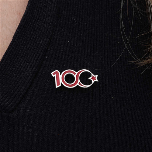 Silver Crescent Star 100th Year Badge We know that the Turkish flag takes its inspiration from the crescent and star reflected in a lake of blood. We offer you an unmissable opportunity to carry the sacred meaning of the flag and share it with your loved ones. This stylish 100th year badge is a perfect gift option for birthdays, Father's Day or special occasions. This badge model is made of 925 sterling silver. Rhodium plated silver. Rhodium plated silver badge models preserve their shine for a long time and oxidation is delayed. Like all silver badges, the silver crescent star badge model is produced entirely by hand. Due to silver and precious stones, there may be a ± 10% deviation in the average product weight. Width: 2.70 cm. Length: 1.10 cm. Average Weight: 2.45 gr