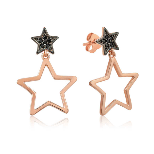 Silver Star Earrings Reminiscent of the bright shine of the night, the star is the symbol of shine, light, illumination, and hope. These stylish earrings are made of 925 sterling silver. Silver star women's earrings, which you and your loved ones will enjoy wearing, are a perfect option as a birthday gift, Valentine's Day gift, or a gift for mothers on special occasions. Rose gold plating is used on the silver. Rose gold-plated women's products preserve their shine for a long time, turn the silver to a pink color, and oxidation is delayed. The stones on it are zircon. Like all silver women's earrings, the silver star women's earring is also handmade. Due to silver and precious stones, there may be ± 10% deviation in the specified product weight. Width: 1.50 cm Length: 2.00 cm Average Weight: 2.20 gr.