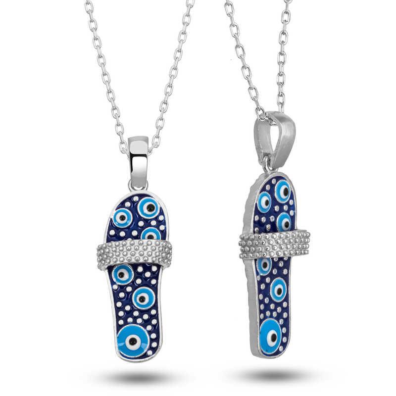 Silver Ribbon Slipper Women's Necklace Evil eye beads have been used for many years to protect against evil eyes. The evil eye bead is a precaution against the negative effects of evil eyes on people. For this reason, people wear evil eye beads to protect their loved ones. This ribbon slipper women's necklace reflects elegance and style. You can choose this model, which has always been popular and does not compromise on its elegance, as a birthday gift, Valentine's Day gift or a gift for mothers on special occasions. The silver evil eye ribbon slipper women's necklace is made of 925 sterling silver. Rhodium plated silver. Rhodium plated silver women's necklaces preserve their shine for a long time and oxidation is delayed. Like all silver women's necklaces, this silver evil eye ribbon slipper women's necklace model is produced entirely by hand. Due to silver and precious stones, there may be a ± 10% deviation in the average product weight. Necklace Width: 0.90 cm Necklace Length: 2.70 cm Chain Length: 45 cm Average Weight: 2.80 gr.