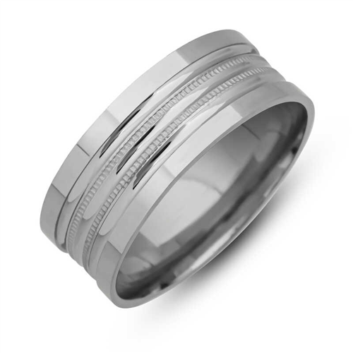 Silver Line Patterned Rhodium Wedding RingSilver Line Patterned Rhodium Wedding Ring The symbol of love and loyalty, the sparkle of elegance and style is special for you and your loved one with its special designs... The product is made of rhodium plated on 925 sterling silver. Rhodium plated silver wedding ring models preserve their shine for a long time and maintain their first-day shine. All of our products are handmade and there may be ± 10% deviation in product weight due to precious stones.Wedding Ring Diameter: 2.50 cmWedding Ring Width: 8 mmAverage Weight: 5.0 gr