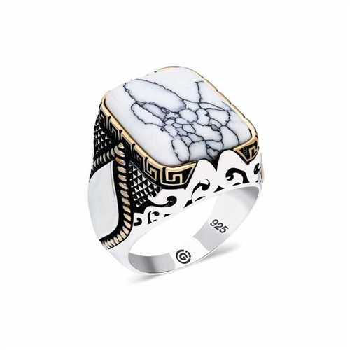 Silver Striped White Square Men's RingThis men's ring model, made of white stones on silver, is a stylish accessory that you can use at any time of the day. You can gift this ring to yourself or your loved ones on your birthday, Father's Day or special occasions. The white stone men's ring model is made of 925 sterling silver. Oxidized silver is coated. Oxidized silver men's rings preserve their shine for a long time. As with all men's rings, the silver Striped White Stone men's ring model is handmade. Due to silver and precious stones, there may be a ± 10% deviation from the average product weight.Average Weight: 17.00 gr.