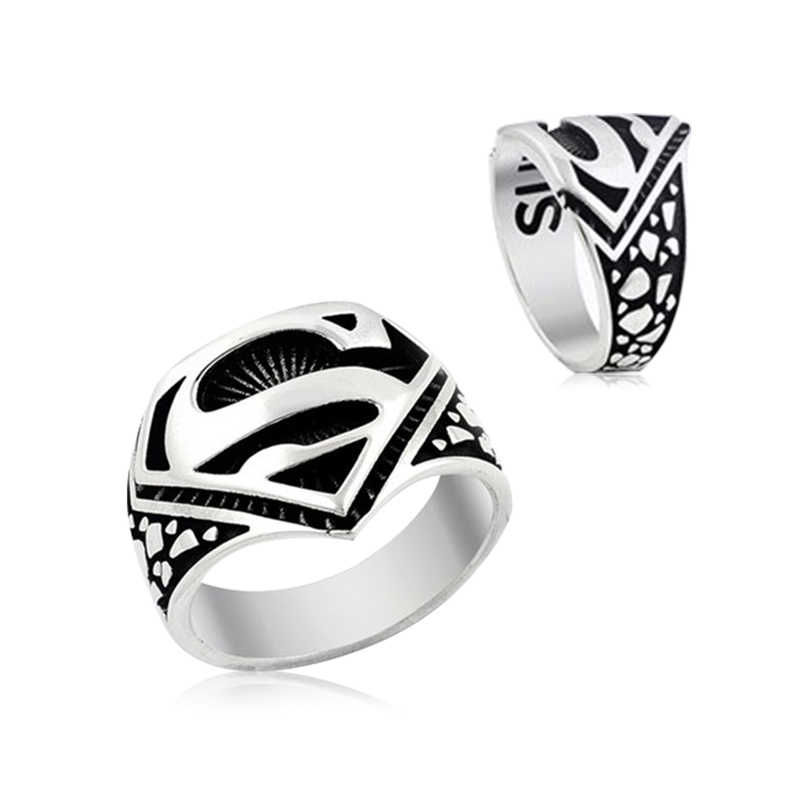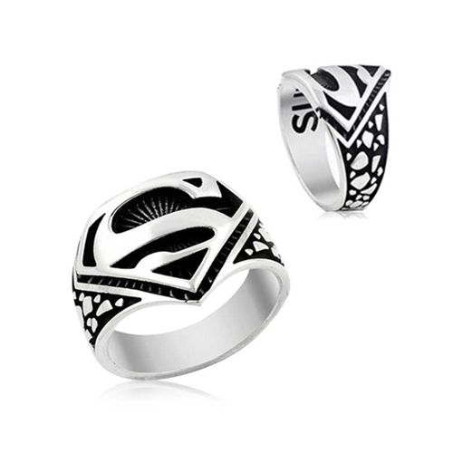 Silver Superman Symbol RingSuperman, a comic book hero. He is one of the most popular and recognizable fictional characters in the entire comic book world and an important American cultural icon. You can gift this ring to your dream Superman and make him the main hero of your dream world. This specially designed Superman men's ring is made of 925 sterling silver. Oxidized silver. Oxidized coating gives the silver a black color. This ring is a perfect gift option that you can give to your loved one on birthdays, Valentine's Day and special occasions. Like all of our silver men's ring models, this Superman men's ring is produced entirely by hand. Due to silver and precious stones, there may be a ± 10% deviation in product weight.Width: 2.00 cmLength: 1.90 cmWeight: 10.00 gr.