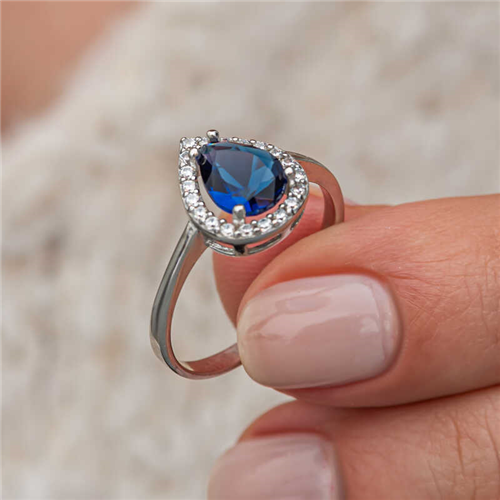 Silver Drop Sapphire Stone Women's Ring This stylish ring, a symbol of elegance and nobility, attracts all the attention with its dazzling drop-cut blue sapphire stone. The center stone surrounded by shiny zircon stones reflects the light perfectly from every angle, creating a fascinating sparkle. Made of 925 sterling silver, this special design is a perfect accessory that will complete your style for both daily use and special occasions. It highlights the elegant style of women with its stylish and modern lines. Rhodium plated silver. Rhodium plated silver ring models preserve their shine for a long time and oxidation is delayed. As with all silver rings, the silver zircon stone women's ring model is produced entirely by hand. Due to silver and precious stones, there may be a ± 10% deviation in the average product weight. Ring Width: 1.00 cm. Ring Length: 1.10 cm. Average Weight: 2.00 gr.