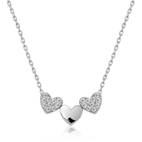 Silver Three Heart Necklace The heart symbol has always been the symbol of unconditional love and passion. In religious teachings, the power of the heart is limitless. Because the heart is the home of the Creator and our gateway to reality that opens to the universe. The three heart necklace is one of the most stylish and meaningful necklaces that will represent your love. This stylish three heart necklace is a perfect option for a birthday gift, Valentine's Day gift or a gift for mothers on special occasions. The three heart women's necklace with silver zircon stones is made of 925 sterling silver. This necklace is rhodium plated. Rhodium plated silver women's necklace models preserve their shine for a long time. The sparkling stones on it are zircon. Like all silver women's necklace models, the silver three heart women's necklace model is produced by hand. Due to silver and precious stones, there may be ± 10% deviation in the average product weight. Width: 1.60 cm Length: 0.50 cm Average Weight: 1.69 gr. Chain Length: 45.00 cm