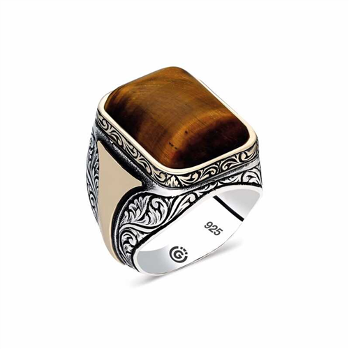 Silver Tiger Eye Stone Square Men's RingThis men's ring model made of Tiger Eye stone on silver is a stylish accessory that you can use at any time of the day. You can gift this ring to yourself or your loved ones on your birthday, Father's Day or special occasions. The tiger eye stone men's ring model is made of 925 sterling silver. Oxide coating is applied on the silver. Oxide coating preserves its shine for a long time. Like all men's rings, the silver Tiger Eye Square men's ring model is produced by hand. Due to silver and precious stones, there may be a ± 10% deviation from the average product weight.Average Weight: 17.00 gr.