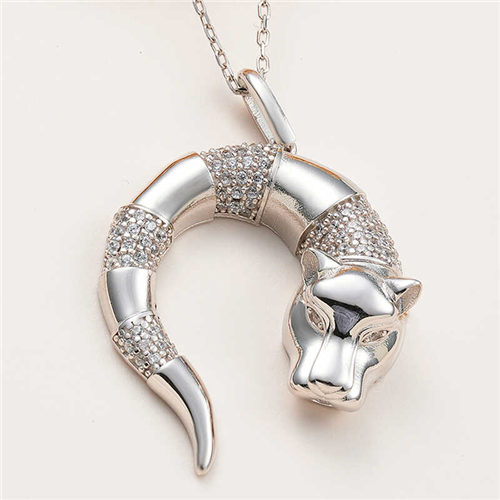 Silver Tiger Figured Women's Necklace The tiger is the symbol of great power and authority. How about making your loved ones happy with a necklace designed inspired by this power? This stylish necklace is made of 925 sterling silver. Rhodium-plated silver. Rhodium-plated necklaces preserve their shine for a long time. Like all women's necklaces, the silver tiger figured women's necklace is also handmade. You can gift this stylish necklace to yourself or your loved ones on your birthday or on special occasions. Due to silver and precious stones, there may be ± 10% deviation in product weight. Width: 2.50 cm Length: 3.00 cm Chain Length: 45 cm Average Weight: 6.00 gr.