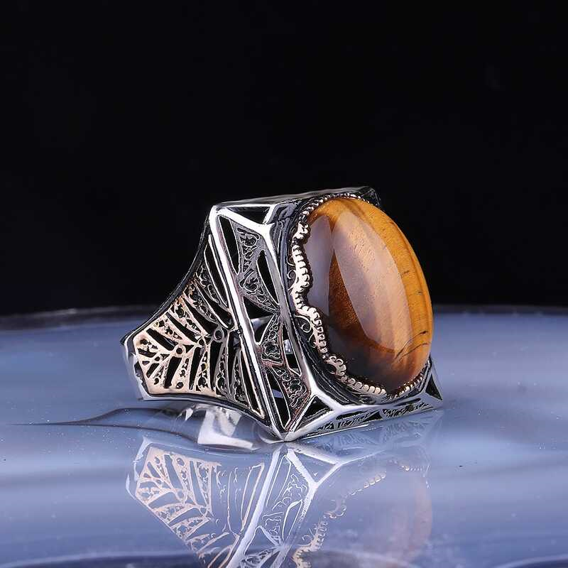 Silver Tiger Eye Stone Square Men's RingThis men's ring model, made of tiger eye stone on silver, is a stylish accessory that you can use at any time of the day. You can gift this ring to yourself or your loved ones on your birthday, Father's Day or special occasions. The domed oval tiger eye stone men's ring model is made of 925 sterling silver. Oxidized silver is coated. Oxidized silver men's rings preserve their shine for a long time. As with all men's rings, the silver tiger eye stone men's ring model is handmade. Due to silver and precious stones, there may be ± 10% deviation in the average product weight.Width: 1.70 cmLength: 2.10 cmAvg. Weight: 18.50 gr.