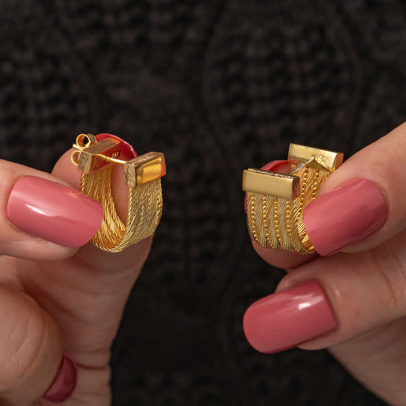 Silver Trabzon Wicker Studded Women's Earrings You can use the fashion-friendly silver trabzon wicker women's earring models in an elegant way both in your daily life and on special days and nights. You can complete your outfits with innovative products that appeal to the taste of women of all ages. These stylish earrings are a perfect option for a birthday gift, a Valentine's Day gift or on special occasions. Silver trabzon wicker studded women's earrings are made of 925 sterling silver. These earrings are gold-plated. Gold-plated products preserve their shine for a long time and delay oxidation. Like all silver women's earring models, the silver trabzon wicker women's earring model is produced by hand. Due to silver and precious stones, there may be a ± 10% deviation in the average product weight. Earring Width: 1.80 cm Earring Length: 1.80 cm Average Weight: 8.50 gr.