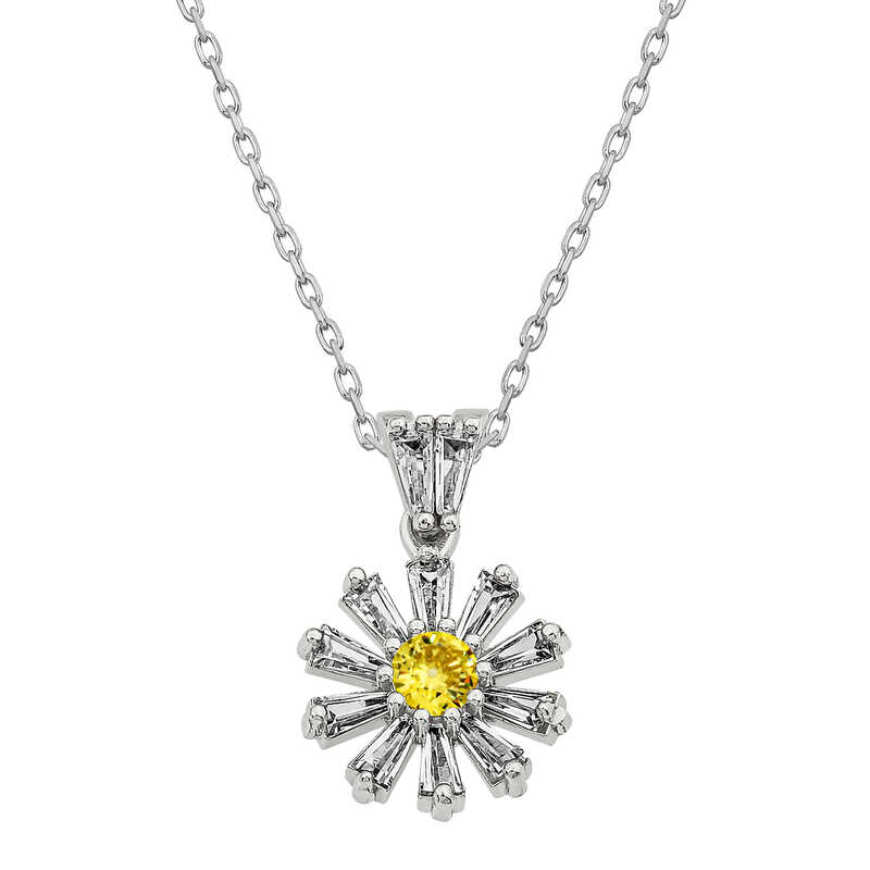 Silver Trapeze Stone Flower Women's Necklace Why not express your feelings to your loved ones with an elegant flower patterned necklace? This stylish set, which is among the gift options that you can send her on special occasions, is among the most beautiful ways to please your loved ones. A silver trapezoid stone flower women's necklace crafted with the highest quality and most sparkling stones, is waiting for those who want to express their love once again, for those who want to say "you are a flower." This specially designed silver flower women's necklace is made of 925 sterling silver. Rhodium plated silver. Rhodium plated silver women's necklace models preserve their shine for a long time and oxidation is delayed. The average silver chain length is 45 cm. As with all women's silver set models, the silver flower women's necklace is handmade. Due to silver and precious stones, there may be a ± 10% deviation in the specified product weight. Width: 1.20 cm Length: 1.80 cm Avg. Weight: 3.30 gr.