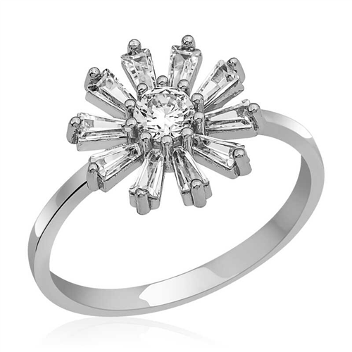 Silver Trapezoidal Stone Flower Lady RingWhy do you have a elegant ring with floral pattern? This elegant ring is one of the most beautiful ways that you can send to O at special times and enjoy your loved ones. The silver trapezoidal stone flower lady ring prepared with the highest quality, most radiating stones; they want to tell their love once again, you are waiting for those who want to say a flower. This special design is made of silver trapezoidal stone flower lady ring 925 adjustment silver. Rodium coating on silver is made. Silver lady ring models made of rodium coating keep brightness for a long time, and the oxidization is delayed. As with all lady silver ring models, silver trapezoidal stone flower lady ring is also manufactured with hand labor. Due to silver and gemstones, the product specified can be ± 10% deviation. Width: 2.00 cm Size: 2.30 cmOrt. Weight: 2.50 gr.