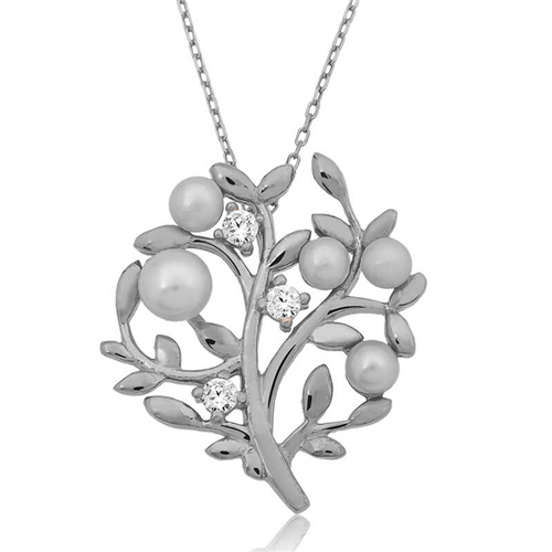 Silver Tree of Life Woman Necklace Tree necklace represents new life, the energy of life, and brand new opportunities. With its roots in the ground, it has become a bridge connecting heaven and earth with its branches rising to the sky. It is interpreted as the growth of new life, the continuation of its lineage, and the symbol of family. And exactly for this reason, it is often given as a gift to people who are seen as family or who are loved very much with the wish "I want you to be my family". You can gift this necklace to your loved ones and people you value who you want to be your family and show them the value you give. The silver tree of life women's necklace model is made of 925 sterling silver. Rhodium plated silver. Rhodium plated silver women's necklace models preserve their shine for a long time and oxidation is delayed. The stones on the necklace are pearls and zirconias. The silver chain length is 45 cm on average. Like all silver women's necklace models, the silver tree of life women's necklace model is produced by hand. There may be a ± 10% deviation in the average product weight due to silver and precious stones. Width: 2.50 cm Height: 2.70 cm Average weight: 5.35 gr.