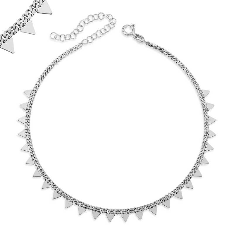 Silver Triangle AnkletAlthough women are usually thought of when it comes to jewelry, it has influenced both men and women throughout history. Jewelry, worn by women to appear more elegant and attractive and by men for style, not only represents social status, personality, beliefs, and identity, but also has various functions. In Anatolia, women working in vineyards, gardens, and fields could easily find their young children's locations thanks to the sound made by anklets they wore on their feet. Anklets were also used to deter poisonous animals such as snakes and scorpions from approaching thanks to the sound they made. Today, they are worn by women who want to look elegant and stylish. Don't deprive your ankles of this elegance and visit our anklet section to choose your favorite model. The product will be sent in a gift box... All of our products are handmade. Due to silver and precious stones, there may be ± 10% deviation in product weight.Width: 0.50 cmLength: 0.30 cmWeight: 4.50 GrLength: 26.00 cm