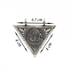 Silver Triangle Openable Ottoman Coat of Arms Amulet Necklace The State Coat of Arms of the Ottoman Empire was prepared for the Ottoman Empire in the 19th century. Before that, the tughras of the sultans served as state decorations. The final version of the Ottoman decoration was enacted by Sultan Abdulhamid II in 1882. There are two flags inside the Ottoman State Decoration. The flag with the crescent and star on a red field symbolizes the Ottoman Dynasty, while the flag on the green field symbolizes the Islamic caliphate. The scales represent Ottoman justice, and the books on the scales represent the Ottoman laws and the Quran, which are the source of justice. The necklace created with this spirituality is made of 925 sterling silver. The necklace is oxidized. Like other silver necklaces, the silver Ottoman Arms amulet necklace is entirely handmade. Due to silver and precious stones, there may be ± 10% deviation from the average product weight. Product Length: 4.00 cm. Product Width: 4.50 cm. Chain Length: 55.00 cm. Average Weight: 20.35 gr.