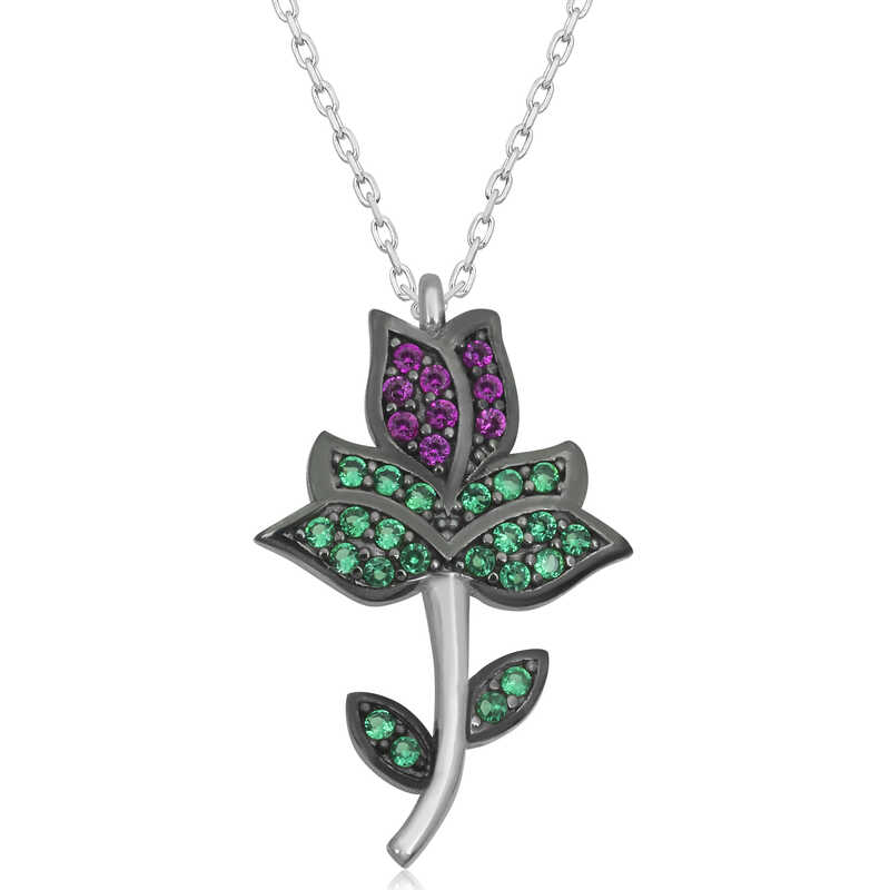 Silver Tulip Women's Necklace The tulip is a unique flower that is likened to the "lover's face, cheek and lips" due to its color and shape, and it symbolizes love and the beloved. This tulip motif women's necklace model is made of 925 sterling silver. The stones on it are zircon. Rhodium plated on silver. Rhodium plated silver women's necklace models preserve their shine for a long time and can always be used like the first day. The silver chain length on the necklace is 45 cm on average. This rhodium plated tulip women's necklace is produced by hand. Due to silver and precious stones, there may be a ± 10% deviation in the average product weight. Width: 1.40 cm Length: 2.20 cm Chain Length: 45 cm Average Weight: 2 gr