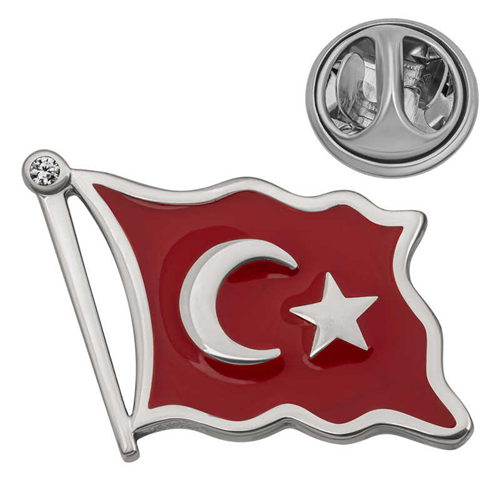Silver Turkish Flag Pin We know that the Turkish flag is inspired by the crescent and star reflected in a lake of blood. We offer you an unmissable opportunity to carry the sacred meaning of the flag and share it with your loved ones. This stylish pin is a perfect option for a birthday gift, Father's Day or any special occasion. This pin model is made of 925 sterling silver. Rhodium plated silver. Rhodium plated silver pin models preserve their shine for a long time and oxidation is delayed. Like all silver pins, the silver Turkish flag pin model is produced entirely by hand. Due to silver and precious stones, there may be a ± 10% deviation in the average product weight. Width: 2.10 cm. Length: 1.60 cm. Average Weight: 3.30 gr