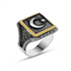 Silver Turkish Flag Crescent and Star Men's RingWe know that the Turkish flag is inspired by the crescent and star reflected in a pool of blood. We offer you an unmissable opportunity to carry the sacred meaning of the flag and share it with your loved ones. You can buy this stylish men's ring for yourself or as a gift to your loved ones on your birthday, Father's Day or special occasions. The Turkish flag crescent and star men's ring is made of 925 sterling silver. The silver is oxidized. Like all silver men's rings, the silver Turkish Flag crescent and star men's ring is produced entirely by hand. Due to silver and precious stones, there may be a ± 10% deviation from the average product weight.Average Weight: 13.00 gr.