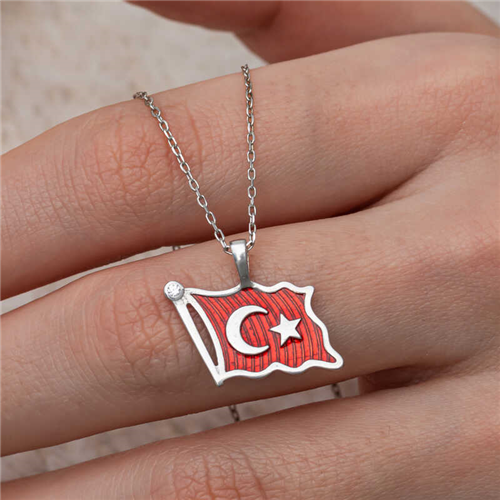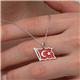 Silver Turkish Flag Women's Necklace We know that the Turkish flag is inspired by the crescent and star reflected in a lake of blood. We offer you an unmissable opportunity to carry the sacred meaning of the flag and share it with your loved ones. The Turkish flag necklace is a meaningful option especially for those looking for a gift that represents Turkish culture. This stylish necklace is a perfect option for a birthday gift, Valentine's Day or special occasions. The necklace is made of 925 sterling silver. Rhodium plated on the silver. Due to silver and precious stones, there may be ± 10% deviation from the average product weight. Width: 1.50 cm Length: 1.50 cm Avg. Weight: 2.50 gr. Chain Length: 45.00 cm