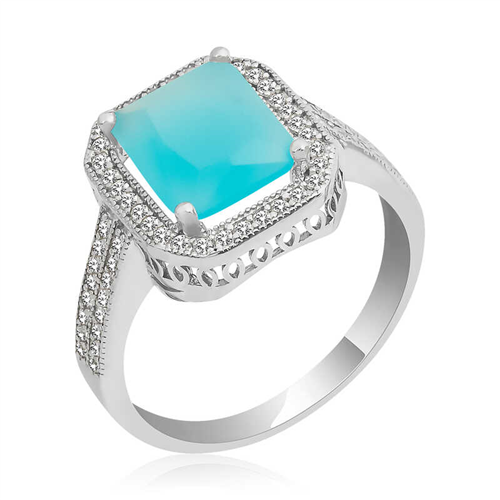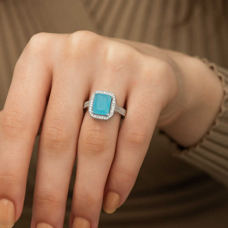Silver Turquoise Baguette Square Women's Ring This specially designed baguette square ring, which you can use easily in daily life, is made of 925 sterling silver. Rhodium plated silver. Rhodium plated women's silver ring models preserve their shine for a long time and oxidation is delayed. The stones on the ring are zircon. It is a perfect gift option for your loved one on birthdays, Valentine's Day and special occasions. As with all of our silver women's ring models, this baguette cut women's ring is also produced entirely by hand. Due to silver and precious stones, there may be ± 10% deviation from the average product weight. Width: 2.10 cm. Length: 2.50 cm. Avg. Weight: 3.50 gr.
