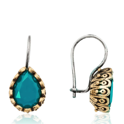 Silver Turquoise Drop Authentic Women's EarringsThe sparkle of silver and zircon will reflect your life energy to your surroundings. These elegant earrings, which you and your loved ones will enjoy wearing, will also be the best gift to share your love. All of our products are handmade. Due to silver and precious stones, there is a ± 10% deviation from the average product weight.Width: 1.00 cm Length: 2.00 cm Average Weight: 3.80 gr.