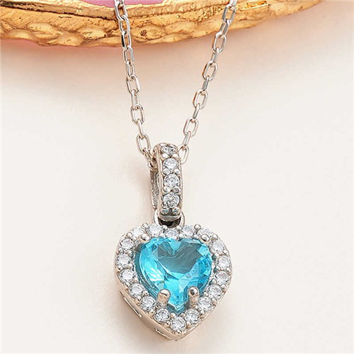 Silver Turquoise Stone Heart Women's Necklace Let your love come to life on the skin of the woman you love with the heart necklace model that expresses love with its heart pattern. Adorn your loved one with love with this heart necklace that young lovers and those who feel young can choose on special occasions. A heart patterned necklace that your loved ones will enjoy wearing as much as you do will be one of the best gifts for your loved one. The heart women's necklace is made of 925 sterling silver. Rhodium plated silver. Rhodium plated silver women's heart necklaces preserve their shine for a long time and oxidation is delayed. The white stones on the necklace are zircon. The average silver chain length is 45 cm. Like all women's necklaces, the silver turquoise stone heart women's necklace is also handmade. Due to silver and precious stones, there may be a ± 10% deviation in the average product weight. Necklace Width: 0.90 cm Necklace Length: 1.00 cm Chain Length: 45 cm Average Weight: 3.10 gr