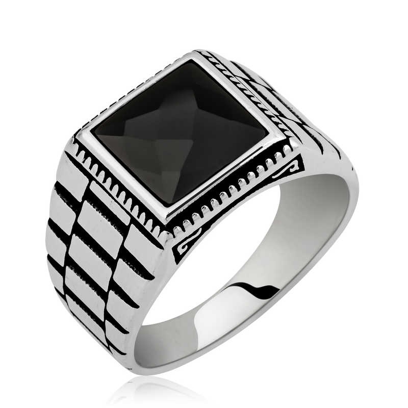Men's Ring with Silver Watch Strap PatternWe offer the highest quality and stylish men's jewelry with new models to men. Why not impress a woman with a nice ring? The men's ring model with a silver watch strap pattern is specially handcrafted. You can be happy to wear this stylish silver men's ring on your finger and give it to your friends as a gift. This stylish ring model is made of 925 sterling silver. The silver is oxidized. Oxidized silver men's rings have an authentic look. Like all silver men's rings, the men's ring model with a watch strap pattern and cut stones is produced entirely by hand. Due to silver and precious stones, there may be a ± 10% deviation in the average product weight.Width: 1.20 cmLength: 1.20 cmAverage Weight: 10.00 gr.