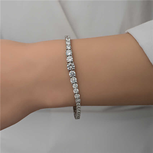 Silver Waterway Bracelet with White StonesYou will love using this bracelet, which reminds you of stars with its sparkling stones, for everyday use, special occasions, and nights out. The timeless White Stone Waterway Silver Bracelet with White Stones is waiting for you, appealing to all women who want to create an elegant look. The silver waterway bracelet with white stones is a perfect choice for a birthday gift, a Valentine's Day gift, or a gift for mothers on special occasions. The silver waterway bracelet with white stones is made of 925 sterling silver. The silver is rhodium plated. The stones on the bracelet are 0.30 0.40 0.50 mm. The rhodium-plated women's bracelet preserves its shine for a long time and oxidation is delayed. As with all women's bracelets, the silver-filtered white stone waterway women's bracelet is also handmade. Due to silver and precious stones, there may be a ± 10% deviation in the average product weight specified.Width: 0.30 0.40 0.50 mmBracelet Length: 18 cmAverage Weight: 11.50 gr.