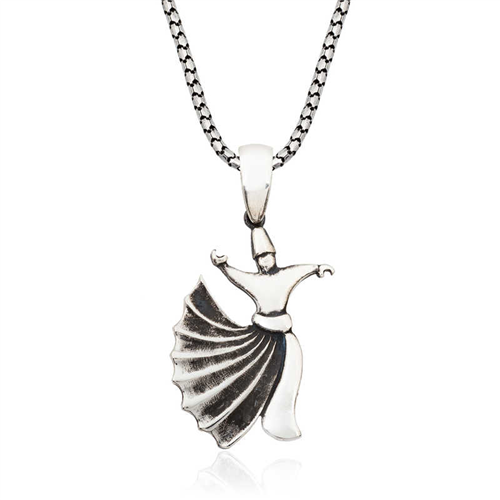 Silver Whirling Dervish Men's Necklace Sema; symbolically, expresses the formation of the universe, the resurrection of man in the universe, his taking action with love for the Almighty Creator and his turning towards the "Perfect Man" by realizing his servitude. Every movement of the Semah has meaning. It gives peace when listened to with the sound of the Ney. The right hand of the whirling dervishes looks to the sky, and the left hand to the ground. This means that the right hand receives from God and gives it to the people with the left hand turned to the ground. In this way, the rebirth is completed. You can love this meaningful whirling dervish necklace and gift it to your loved ones. The silver is oxidized. Oxidized silver necklaces preserve their shine for a long time and give the silver its black color. The average silver chain length is 55 cm. Like all silver necklaces, the silver whirling dervish necklace is handmade. Due to silver and precious stones, there may be ± 10% deviation in the specified product weight. Width: 1.50 cm Height: 2.70 cm Avg. Weight: 7.20 gr. Chain Length: 55 cm