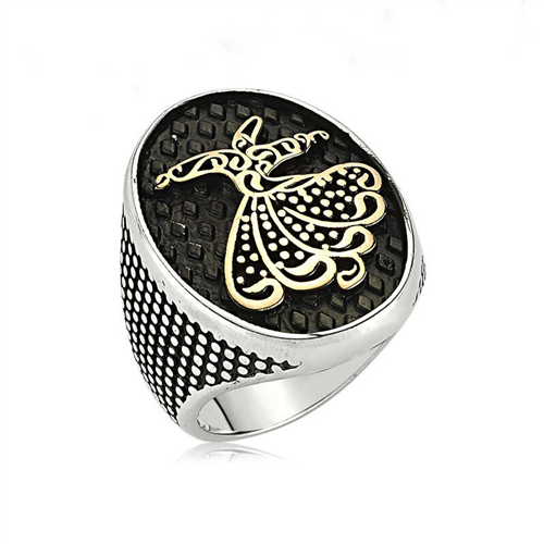 Gumus Black Taslı Ottoman Armalı Male Yuzuk