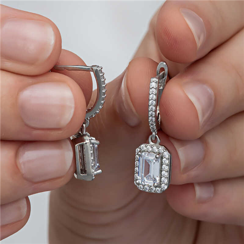 Silver White Baguette Stone Dangle Women's EarringsThe baguette stone women's earrings, which will never go out of fashion, are reinterpreted in different styles with today's jewelry. The eye-catching sparkle of the baguette will surround you. These silver white baguette stone dangling women's earrings, which you and your loved ones will enjoy wearing, will also be one of the best gifts to share your love. The product is made of 925 sterling silver. Rhodium plated silver. Rhodium-plated products preserve their shine for a long time and oxidation is delayed. The stones on it are zircon and baguette. Like all silver earrings, the silver white baguette stone women's earrings are produced by hand. Due to silver and precious stones, there may be a ± 10% deviation in the average product weight.Width: 0.80 cmLength: 2.60 cmAverage Weight: 4.50 gr.