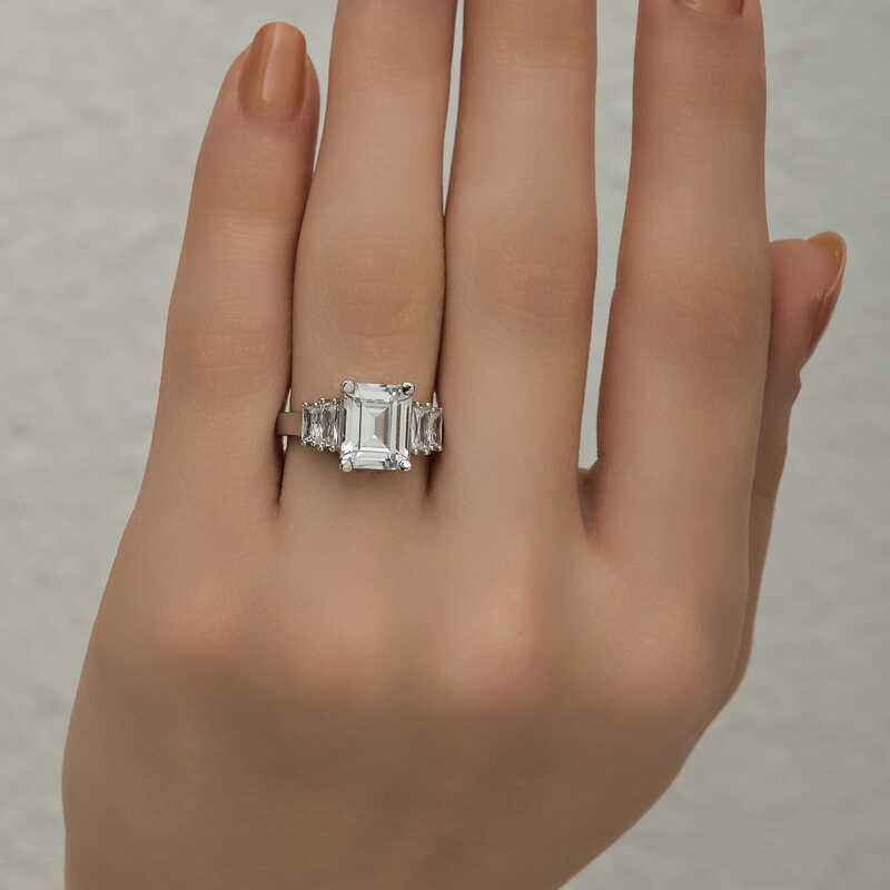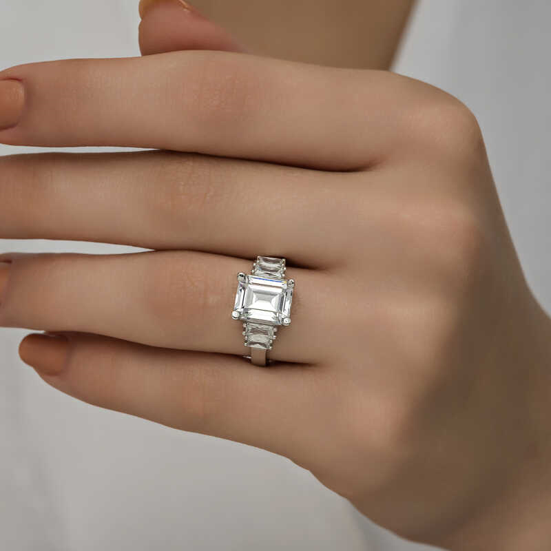 Silver White Baget Stone Lady Ring is a very fashionable ring model decorated with bright baget stones; birthday gifts is a very fashionable option that you can choose in special days as gifts to Valentines day gifts or mothers. The ring is made of 925 sterling silver. Rodium coating on silver is made. Silver rings made of rodium coating keep brightness for a long time, oxidizing is delayed. The stones located on the bag. The silver white baget stone lady ring model as all lady silver rings is also manufactured with hand labor. Due to silver and precious stones, the average product weight specified can be ± 10% deviation. Width : 2.10 cm Size : 2.50 cmOrt. Weight : 5.10 gr.