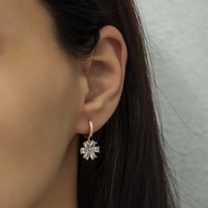 Silver White Flower Women's EarringsWhy not express your feelings to your loved ones with elegant floral earrings? This stylish earring, which is among the gift options that you can send her on special occasions, is among the most beautiful ways to make your loved ones happy. Silver white flower women's earrings crafted with the highest quality and most sparkling stones are waiting for those who want to express their love once again, for those who want to say you are a flower. This specially designed silver white flower women's earrings is made of 925 sterling silver. Rose plated silver. Rose plated silver women's earrings preserve their shine for a long time and oxidation is delayed. Like all women's silver earring models, the silver white flower women's earrings are handmade. There may be ± 10% deviation in the specified product weight due to silver and precious stones. Width: 1.10 cmLength: 2.30 cmAvg. Weight: 4.10 gr.