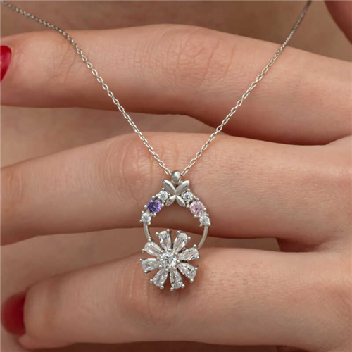 Silver White Swirling Flower Women's Necklace Why not express your feelings to your loved ones with an elegant floral patterned necklace? This stylish necklace, which is among the gift options that you can send to her on special occasions, is among the best ways to make your loved ones happy. Crafted with the highest quality, brightest, and most sparkling stones, the silver white flower women's necklace is waiting for those who want to express their love once again, for those who want to say "you are a flower." This specially designed silver white flower women's necklace is made of 925 sterling silver. Rhodium plated silver. Rhodium plated silver women's necklace models preserve their shine for a long time and oxidation is delayed. The average silver chain length is 45 cm. Like all women's silver necklace models, the silver white flower women's necklace is also handmade. Due to silver and precious stones, there may be ± 10% deviation in the specified product weight. Width: 1.10 cm Length: 2.00 cm Average Weight: 3.10 gr. Chain Length: 45.00 cm