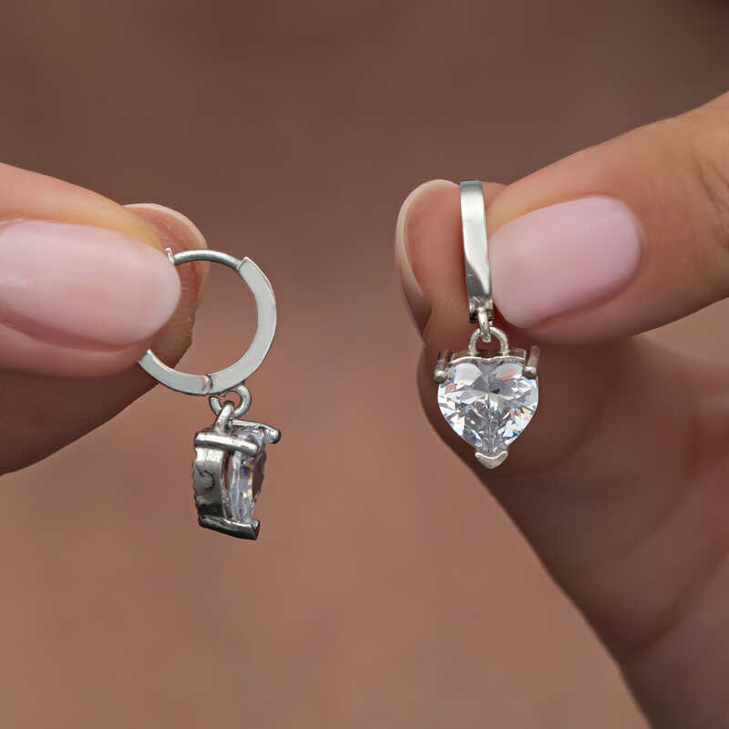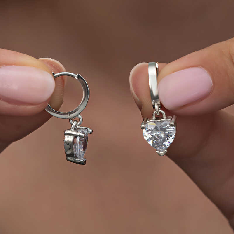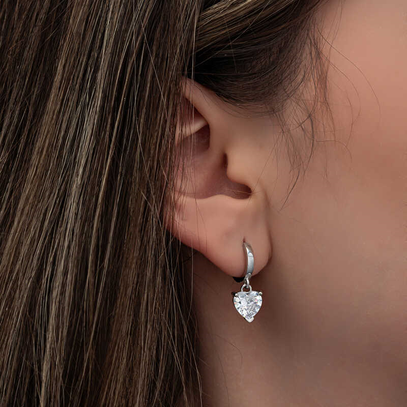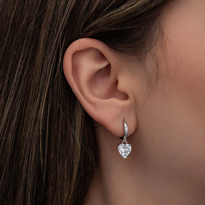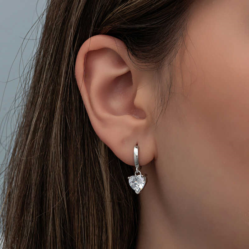 Silver White Stone Heart EarringsLet your love come to life on the skin of the woman you love with the heart necklace model that expresses love with a heart pattern. Adorn your loved one with love with these heart earrings that can be chosen by young lovers and those who feel young on special occasions. Heart patterned earrings that your loved ones will enjoy wearing as much as you will be one of the best gifts for your loved one. Heart women's earrings are made of 925 sterling silver. Rhodium plated on the silver. Rhodium plated silver women's heart earrings preserve their shine for a long time and oxidation is delayed. The white stones on the earrings are zirconias. Like all women's earrings, the silver white stone heart women's earrings are produced by hand. Due to silver and precious stones, there may be a ± 10% deviation in the average product weight.Earring Width: 1.20 cmEarring Length: 2.40 cmAverage Weight: 4.20 gr