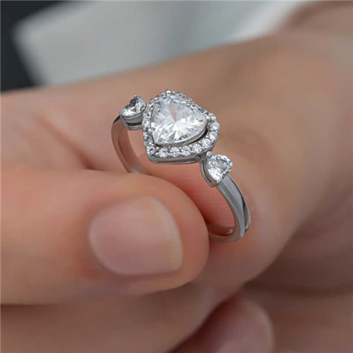 Silver White Stone Heart RingLet your love come to life on the skin of the woman you love with the heart ring model that expresses love with its heart pattern. Adorn your loved one with love with this heart ring that young lovers and those who feel young can choose on special occasions. A heart patterned ring that your loved ones will enjoy wearing as much as you will be one of the best gifts for your loved one. The heart women's ring is made of 925 sterling silver. Rhodium plated silver. Rhodium plated silver women's heart rings preserve their shine for a long time and oxidation is delayed. The white stones on the ring are zirconias. Like all women's necklaces, the silver white stone heart women's ring is produced by hand. Due to silver and precious stones, there may be a ± 10% deviation in the average product weight.Ring Width: 2.00 cmRing Length: 2.30 cmAverage Weight: 2.30 gr