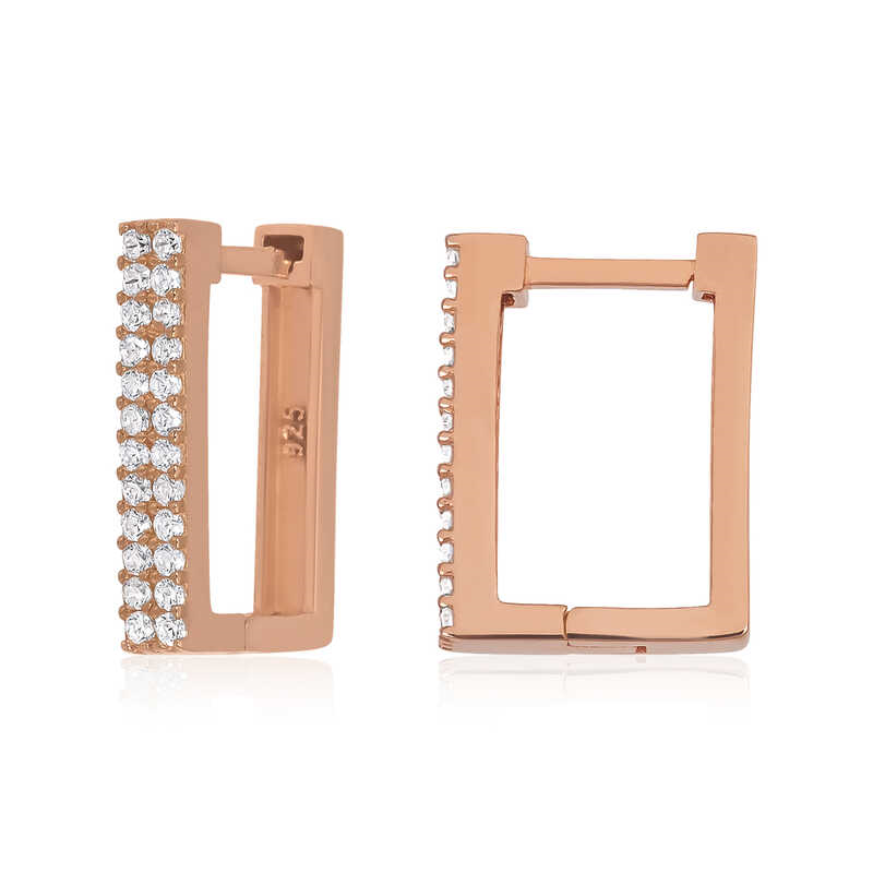 Silver White Stone Square EarringsYou will love using these earrings, which resemble stars with their sparkling stones, for everyday life, special occasions and nights. These timeless silver earrings with stones are waiting for you, appealing to all women who want to create a stylish look. Silver white stone square earrings are a perfect option for birthday gifts, Valentine's Day gifts or as a gift for mothers on special occasions. White stone square earrings are made of 925 sterling silver. Rose plated silver. Rose plated silver white stone square earrings preserve their shine for a long time and oxidation is delayed. Like all women's earrings, the silver white stone square earring model is produced by hand. Due to silver and precious stones, there may be a ± 10% deviation in the average product weight.Earring Width: 1.30 cmEarring: Length: 1.70 cm Average Weight: 3.30 gr.
