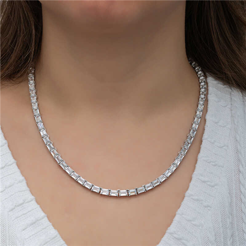 Silver White Stone Waterway Women's Necklace You will love using this bracelet, which reminds me of stars with its sparkling stones, for everyday life, special occasions and nights out. This timeless silver necklace with stones awaits you, appealing to all women who want to create a stylish look. Silver white stone waterway women's necklace is a perfect option for a birthday gift, Valentine's Day gift or as a gift for mothers on special occasions. Silver white stone waterway women's necklace is made of 925 sterling silver. Rhodium plated on the silver. Rhodium plated women's necklace preserves its shine for a long time and oxidation is delayed. Like all women's necklaces, silver white stone waterway women's necklace is produced by hand. Due to silver and precious stones, there may be a ± 10% deviation in the average product weight. Necklace Width: 0.50 cm Necklace Length: 50 cm Necklace Weight: 40.00 gr.