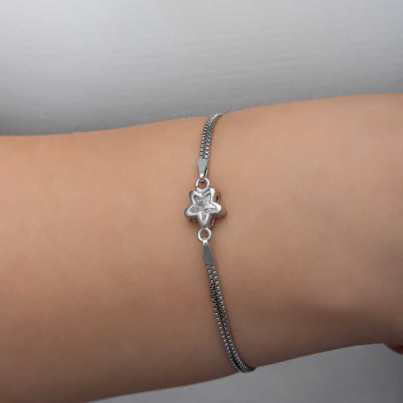 Silver White Zircon Stone Star Women's BraceletThe star is an auspicious symbol believed to bring luck in many societies and teachings. It carries the energy of the Planet Venus. The Planet Venus is also the representative of the energy of love and romance. This stylish bracelet made of white stars is a perfect option for a birthday gift, Valentine's Day gift or on special occasions. Silver white zircon stone star women's bracelet is made of 925 sterling silver. This necklace is rhodium plated. Rhodium plated silver women's bracelet models preserve their shine for a long time. As with all our silver women's bracelet models, the silver white zircon stone star women's bracelet model is also handmade. Due to silver and precious stones, there may be a ± 10% deviation in the average product weight. Width: 1.00 cmLength: 1.00 cmBracelet Length: 20 cmAverage Weight: 4.10 gr.